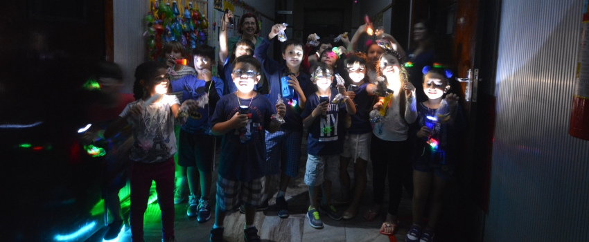 Na seqüência, os estudantes unem-se em uma divertida busca, com lanternas em punho, por pistas espalhadas pelos corredores do Colégio. “Usamos as lanternas para iluminar e corremos em busca ao tesouro, até encontrarmos ele no Parcão”, conta, animado, Gabriel Waquim.