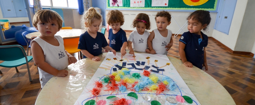 Já, as crianças matriculadas na Educação Infantil envolveram-se em atividades lúdicas que faziam alusão à data festiva. Em uma delas, manipularam massa de modelar, transformando-a em uma “torta” e, assim, exercitaram a coordenação motora. Além disso, ao modelar as velas do “bolo de aniversário”, reconheceram os numerais, mesmo que estejam, ainda, na pré-alfabetização.