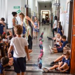 Crianças medem distâncias, usando seus próprios corpos ou objetos