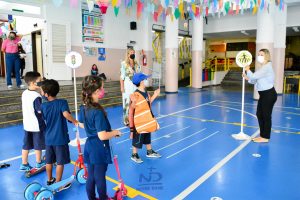 conscientização de trânsito para os estudantes. Contribuindo para o processo lúdico educacional, todos os veículos passaram por uma “vistoria”, realizada pelos inspetores, com direito a placa de identificação para cada “veículo”.