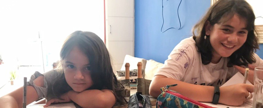 ano, e Isadora, 7 anos, no 2º ano. Sobre o homeschooling, eu posso relatar que está sendo um baita aprendizado. De início, os estudos autônomos estavam acontecendo aleatoriamente, porque todos estávamos sendo surpreendidos e, ao mesmo tempo, nos adaptando. Com a orientação do colégio, já é possível estabelecer uma rotina e isso está ajudando de maneira geral. Adaptamos tarefas e horários de acordo com a aula, a chegada do dever e a revisão pelo sistema acadêmico”.