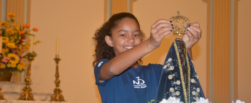 No Colégio Notre Dame Ipanema, a cerimônia da coroação da Virgem contou com a participação das crianças do Ensino Fundamental I que, integrando saberes construídos em aulas de Ensino Religioso e de Música, entoaram e tocaram canções sobre Nossa Senhora.