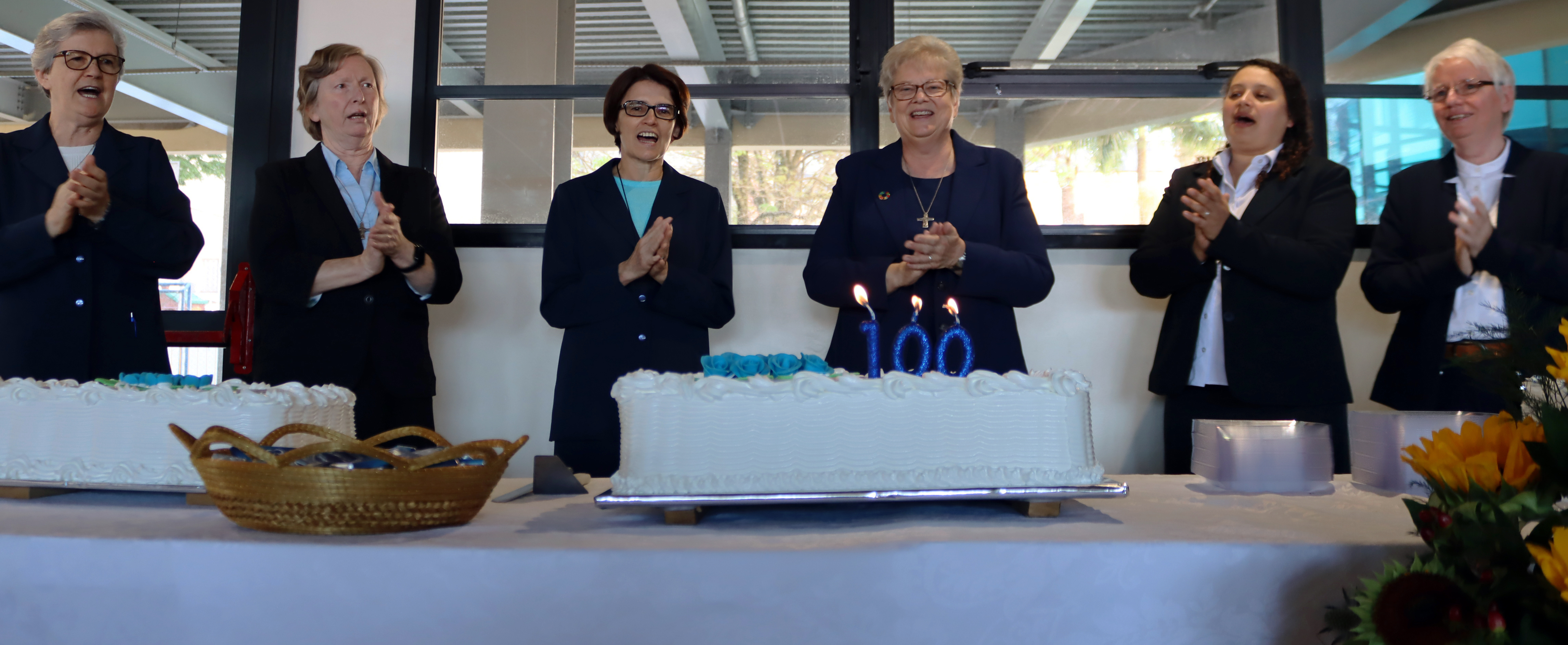 Unidas pelo propósito de proclamar a bondade de Deus e Seu amor providente, ao qual devotam suas vidas, as Irmãs de Notre Dame também deixaram-se congregar pelo júbilo. Afinal, ao menos 180 delas reuniram-se, durante o domingo (01), para celebrar o centenário de presença da Congregação religiosa no Brasil. Realizado na mais longeva entre as instituições de ensino fundadas pelas religiosas no País, o Colégio Notre Dame Passo Fundo, o evento foi prestigiado pela Superiora Geral da Congregação das Irmãs de Notre Dame, Irmã Mary Ann Culpert, bem como por suas conselheiras, Irmã Maria Nonata Bezerra e Irmã Mary Kathleen Burns.