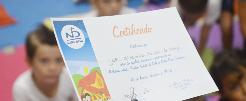 Ao longo de todo o ano letivo, os estudantes matriculados na Educação Infantil do Colégio Notre Dame Ipanema frequentaram, ao menos uma vez por semana, a Biblioteca Infantil Monteiro Lobato – um espaço pensado especialmente para os estudantes desse nível de ensino, repleto de livros, fantoches e fantasias. Por isso, como forma de parabenizá-los pela frequência, a responsável pelo ambiente, Marli Silva, premiou-os como “Leitores do Ano”.