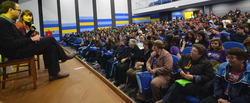 Após a representação, ainda reunidos no auditório do Colégio Notre Dame Passo Fundo, os adolescentes tiveram a oportunidade de ficar frente a frente com o autor do livro, Mario Teixeira.