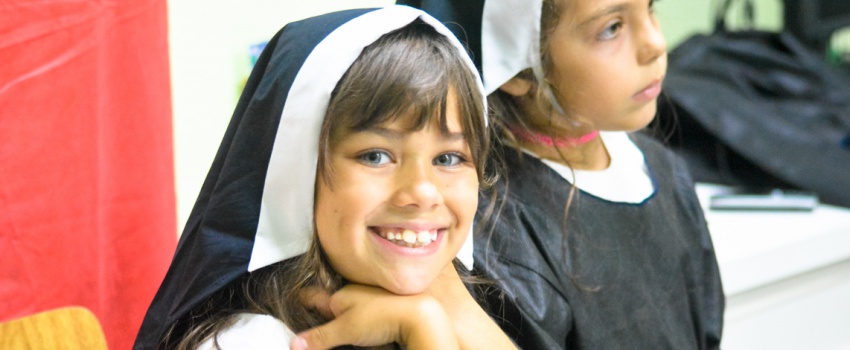 Para comemorar o Dia de Santa Júlia Billiart, celebrado no dia 13 de maio, estudantes dos anos inciais do Ensino Fundamental encenaram a vida da santa da bondade em atividade que aconteceu na Biblioteca Infantil.