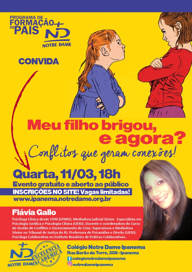 Onde? Colégio Notre Dame Ipanema – Rua Barão da Torre, 308