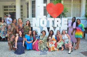 Ao lado da imagem de Nossa Senhora, os estudantes do Grupo de Alunos Notre Dame compartilharam, em depoimentos, a experiência de carregar consigo o “jeito de ser Notre Dame”, e a importância do colégio em suas trajetórias.