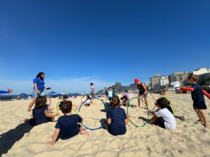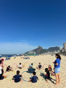 As areias da Praia de Ipanema foram palco para uma animada manhã de atividades para os alunos da Educação Infantil do Notre Dame Ipanema. Inspirada pelos nomes das turmas, que possuem ligação com a temática dos mares e oceanos, a professora propôs um circuito que trabalhou conceitos das aulas de inglês e também habilidades de psicomotricidade.