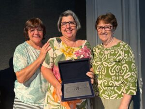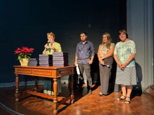 O momento especial da homenagem ficou por conta da entrega da última homenageada, com 35 anos “de casa”, a professora, Andréa Luiza Verano Cordeiro da Silva, recebeu da plateia muitos aplausos, sorrisos e também lágrimas de emoção.