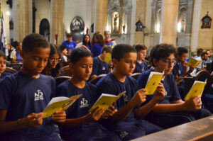 Evento referencial para as escolas católicas do Rio, a Hora Santa da Pastoral da Educação teve a presença marcante de irmãs, professores, coordenação e estudantes Notre Dame, no Santuário de Adoração de Sant’Ana.