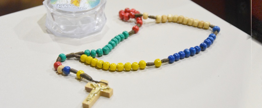 Para isso, estudantes e profissionais participaram da reza do Terço Missionário – composto por contas de cinco cores, que são atribuídas aos diferentes continentes.