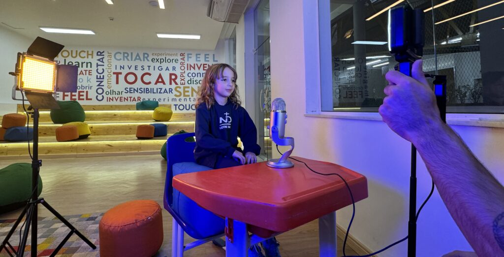 “Optamos pela inovação do NotreCast Itinerante como uma forma de dinamizar os relatos e as experiências compartilhadas. Além disso, é uma maneira de divulgar os espaços diferenciados do colégio. Cada gravação desperta a curiosidade da comunidade escolar sobre quem será o próximo entrevistado e onde será realizada.”