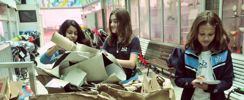 DSC_0223Você sabia que o descarte irregular de papelão pode entupir bueiros e causar alagamentos? Levando em conta o oitavo princípio da Rede de Educação Notre Dame – Cuidado com a vida do Planeta, do outro e de si -, os estudantes do 7º Ano do Ensino Fundamental do Colégio Notre Dame Ipanema promoveram uma campanha de reciclagem, na qual o material é um dos resíduos coletados, juntamente com garrafas pet e latas de alumínio.