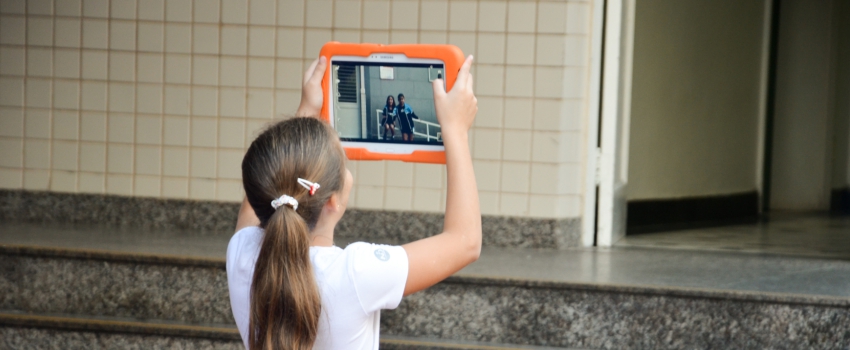 Nela, as crianças deveriam fotografar, utilizando tablets e a partir de diferentes pontos de vista, diversos objetos do ambiente escolar. Em seguida, deveriam criar uma apresentação de slides, por meio da qual poderiam visualizar as diferenças entre as imagens dos mesmos itens.